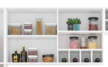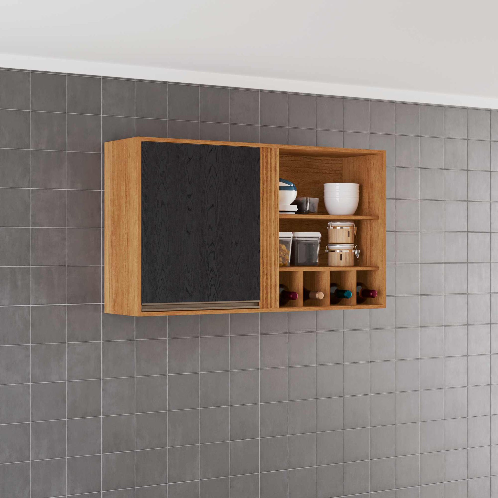 A configuração interna conta com 1 prateleira interna, 2 prateleiras externas e 1 garrafeiro para até 4 garrafas, permitindo uma organização inteligente e visualmente agradável.