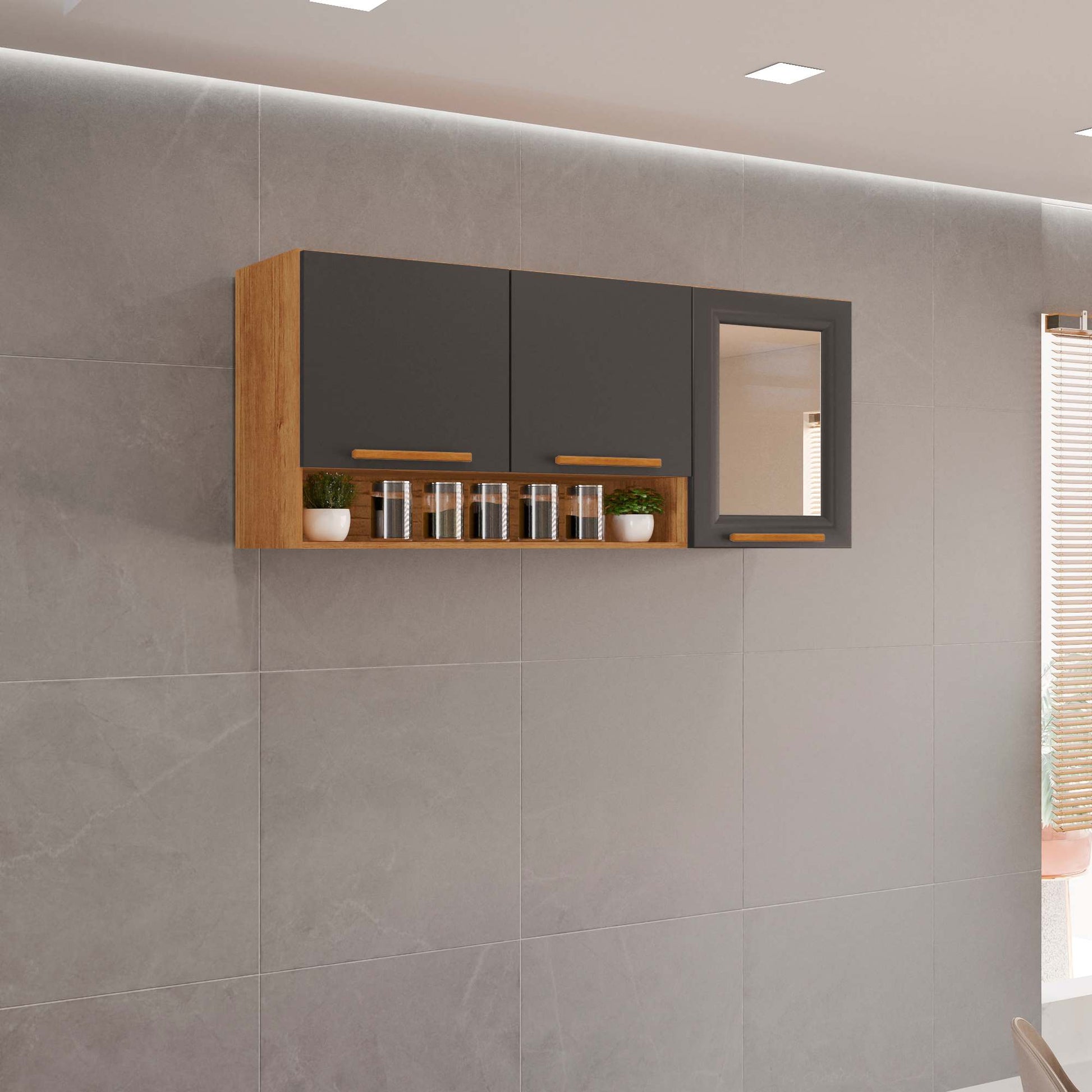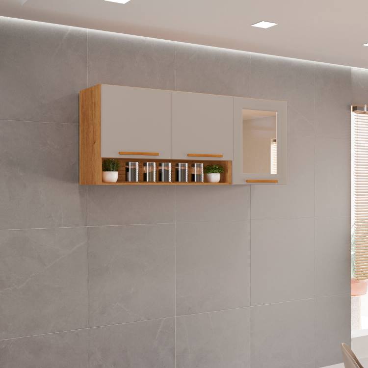 Para uma cozinha moderna e funcional, o Aéreo de Cozinha New Valencia Vidro Reflecta em MDP combina praticidade e design elegante. Ideal para otimizar o espaço, oferece armazenamento eficiente e um visual leve que valoriza o ambiente.