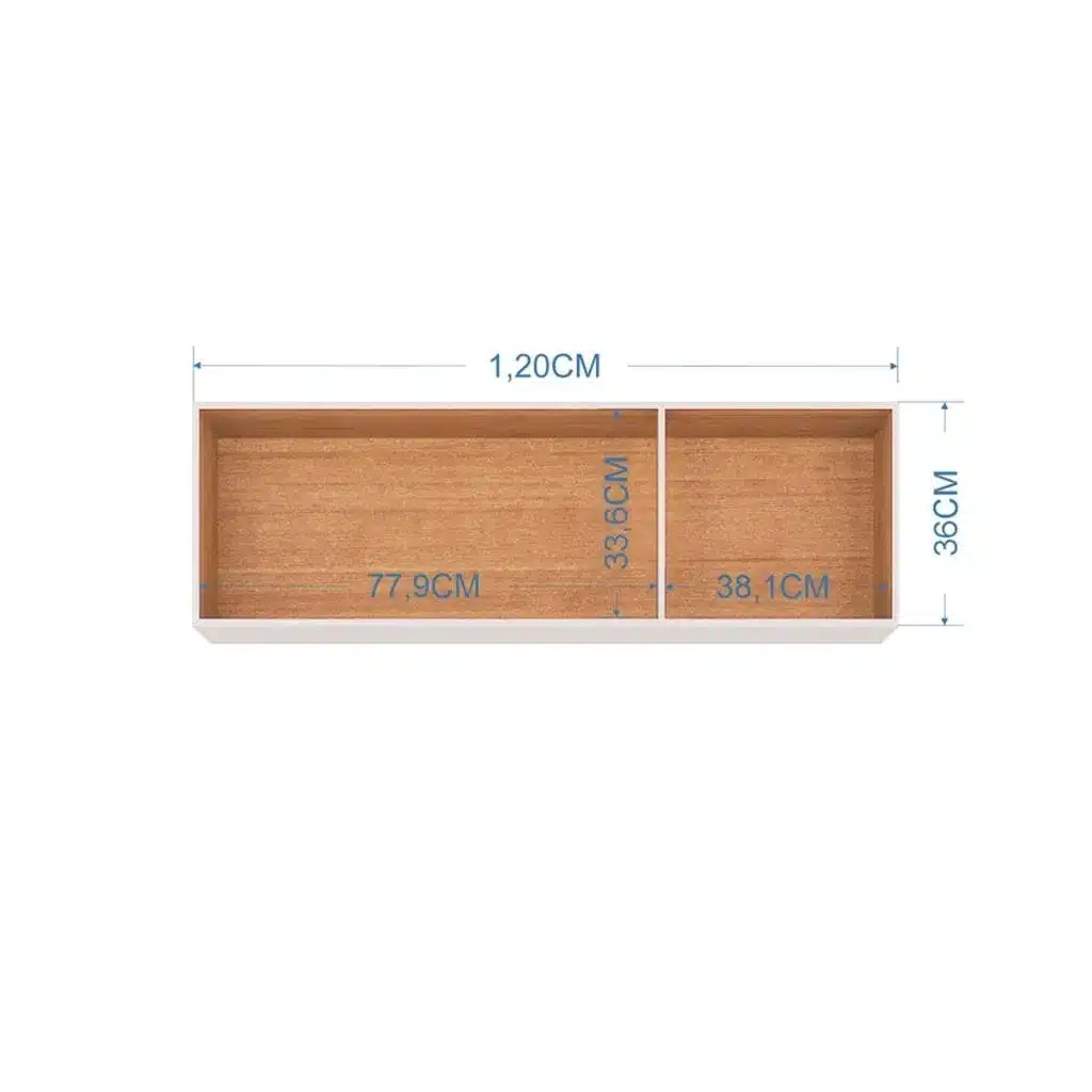 Com 120 cm de largura, 26 cm de profundidade e 36 cm de altura, acomoda louças e copos de forma organizada, contribuindo para uma cozinha mais limpa e funcional.