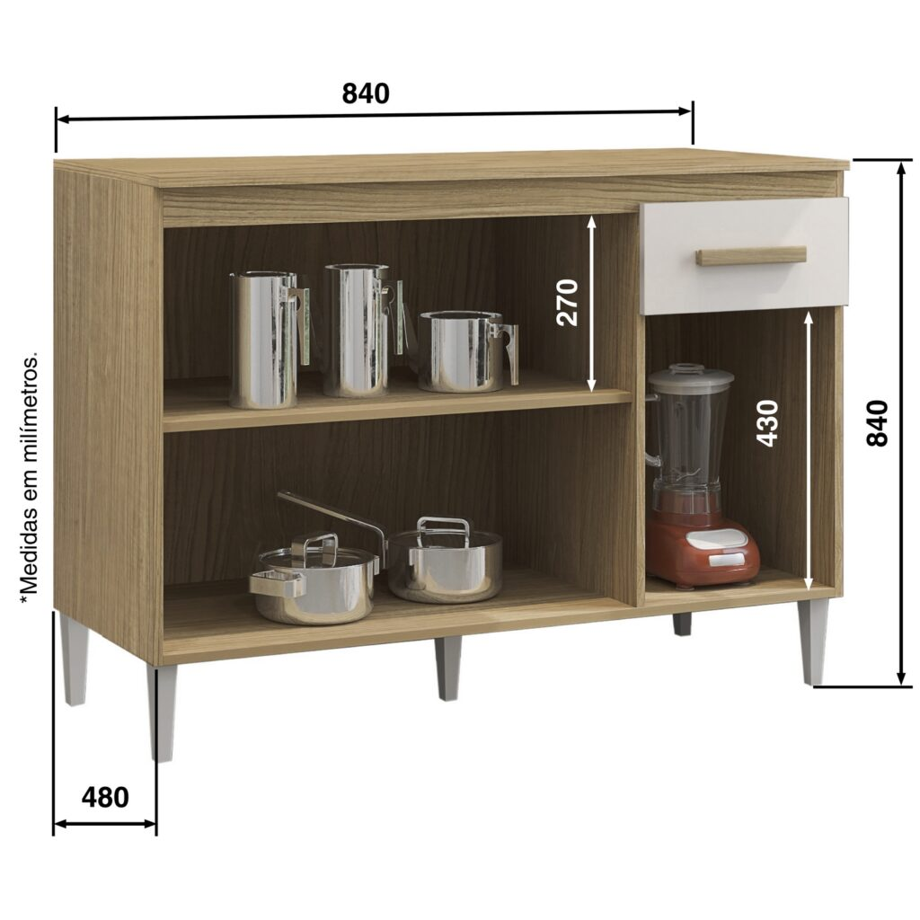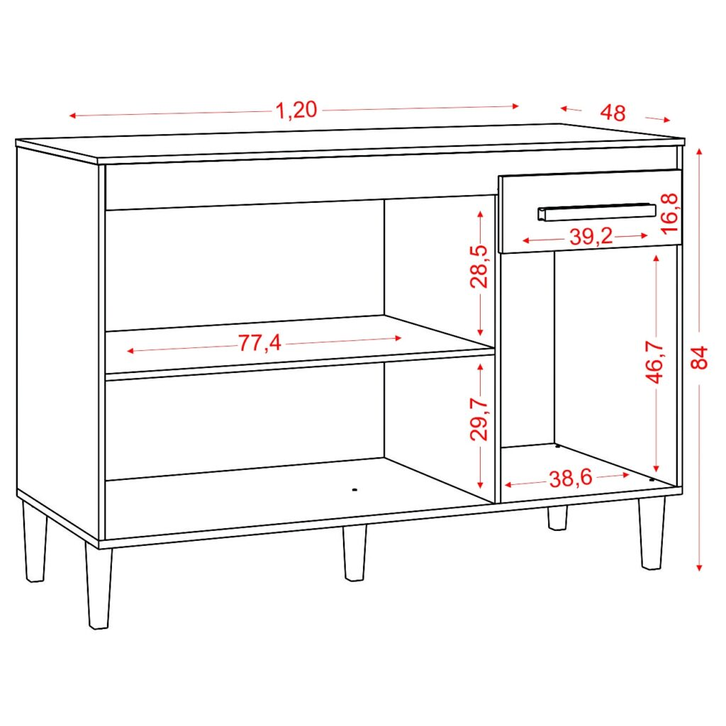 Com 120 cm de largura, 48 cm de profundidade e 84 cm de altura, oferece ótimo aproveitamento da área sem comprometer a circulação no ambiente.