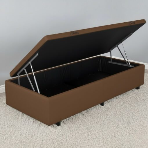 Com 88 cm de largura, 188 cm de profundidade e 40 cm de altura, acomoda colchões de solteiro e disponibiliza um baú com 24 cm de profundidade útil, ideal para guardar roupas de cama, travesseiros e itens de uso ocasional sem interferir na circulação do quarto.