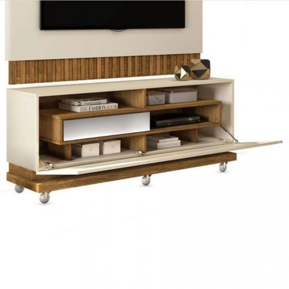 Para um ambiente contemporâneo, este painel com bancada em 100% MDF na cor Off White/Demolição entrega organização prática, espaço para TV até 60" e composição visual elegante com painel ripado e linhas retas.