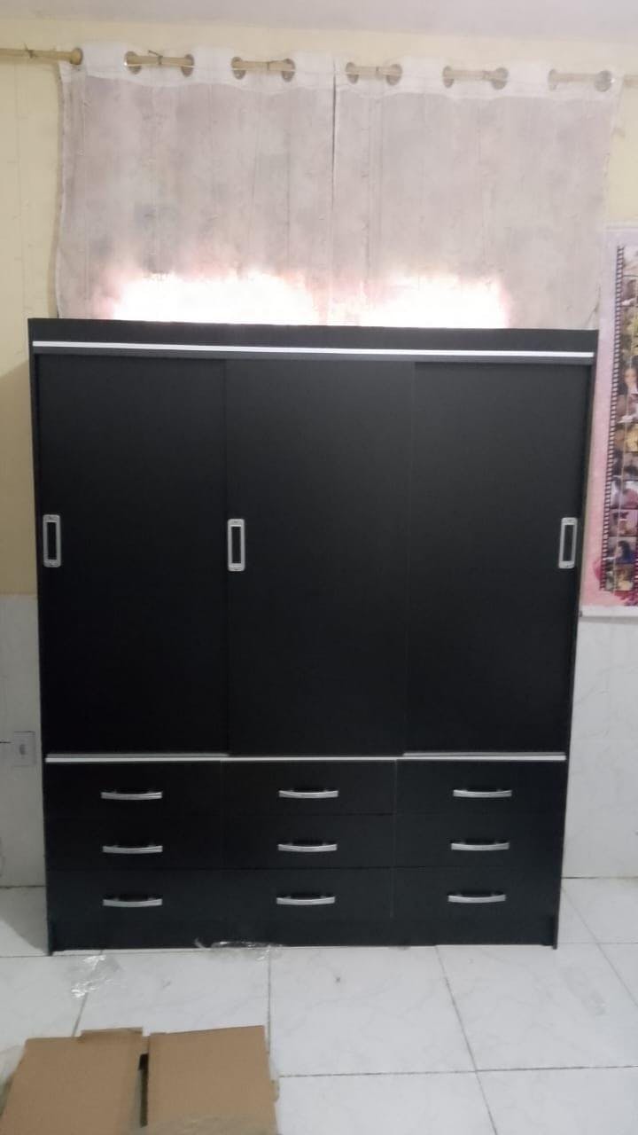 São 3 portas de fácil manuseio e 9 gavetas que organizam roupas e acessórios com praticidade no dia a dia.