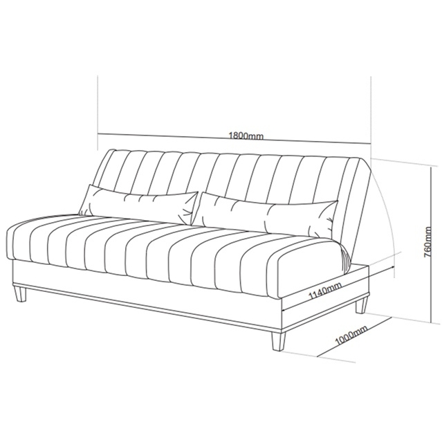 Com 180 cm de largura, 100 cm de profundidade e 76 cm de altura na posição sofá, acomoda até duas pessoas com conforto equilibrado.