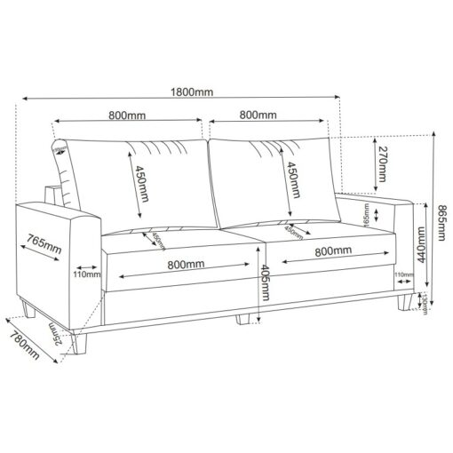 Com 180 cm de largura, 78 cm de profundidade e 86,5 cm de altura, acomoda confortavelmente duas pessoas sem comprometer a circulação do espaço.