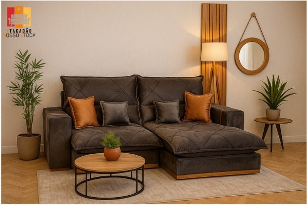 Uma escolha robusta e elegante que eleva o conforto e o visual da sala de estar.